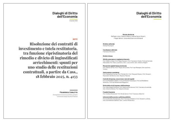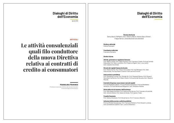 Danny Busch, Guido Calabresi, Pierre-Henri Conac, Raffaele Di Raimo, Aldo Angelo Dolmetta, Giuseppe Ferri Jr., Raffaele Lener, Udo Reifner, Filippo Sartori, Antonella Sciarrone Alibrandi, Thomas Ulen