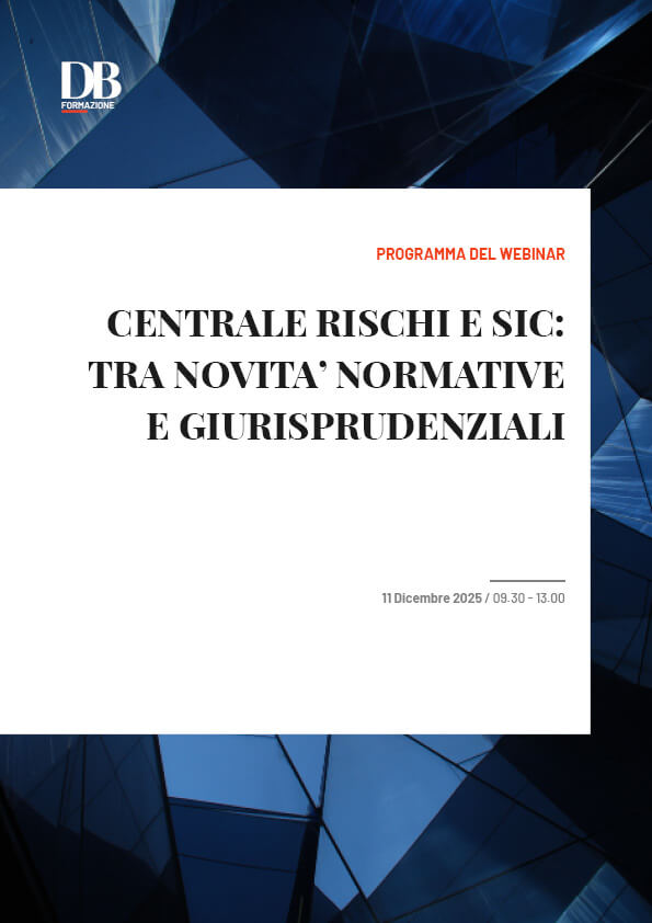 La nostra Rivista ha organizzato per l’11 dicembre 2025 un webinar sulla Centrale Rischi e i SIC, nel corso del quale si approfondiranno, anche alla luce delle novità della CCD 2, i requisiti per l’accesso alle banche dati pubbliche e private, contenenti le informazioni creditizie di consumatori e imprese, nonché i requisiti per le segnalazioni delle relative posizioni creditizie, sia sotto il profilo sostanziale che procedurale.