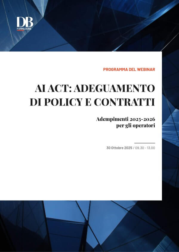 Il prossimo 30 ottobre la nostra Rivista ha organizzato un webinar sulla timeline applicativa dell’AI Act, che approfondirà i presidi necessari per un’adeguata gestione del rischio nell’uso dei sistemi di IA, in riferimento alle policy dell’ente ed alle opportune garanzie in termini contrattuali.