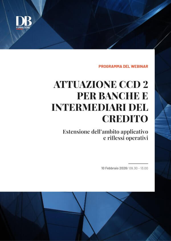 La nostra Rivista ha organizzato per il 10 febbraio 2026 un webinar che approfondirà l’attuazione della CCD 2 con particolare riferimento al rapporto fra banche ed intermediari del credito, alla luce dell’estensione applicativa oggettiva e soggettiva della disciplina del credito ai consumatori.
