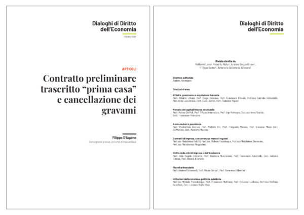 [30] F. MACARIO, Il contratto preliminare, in Fall., 2018, 1193 ss.; G. D’AMICO, La vendita immobiliare (un ventennio di interventi normativi), in I Contratti, 2017, 87 ss.