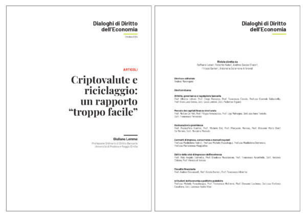ABSTRACT: The growing popularity of cryptocurrencies is causing a number of phenomena; on the one hand, the attention of the European legislator – as well as other legislators – for the adoption of State virtual currencies; on the other hand, the growing concern about the possible use of currencies issued on a decentralised basis for money laundering and terrorist financing. The MiCAR regulation and the forthcoming implementation of the measures in the so-called AML package will hopefully serve to effectively counter these phenomena. The article examines the current regulatory framework, analysing courses of action for operators and authorities in the field, in the context of the ongoing technological change.