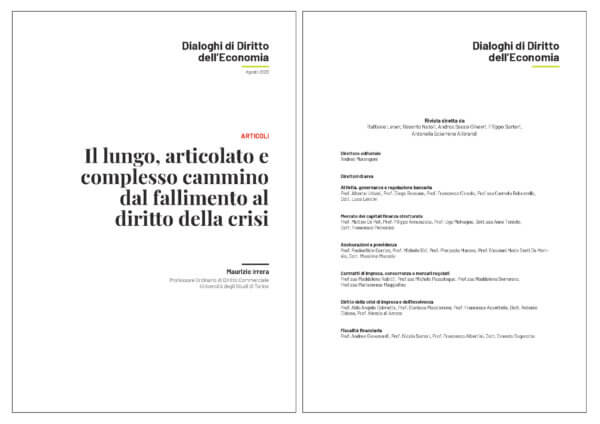[*] Il presente contributo riproduce i primi due paragrafi del Capitolo I, opera dell’Autore, del Volume M. IRRERA, M. PERRINO, F. PASQUARIELLO, Lineamenti di diritto della crisi e dell’insolvenza, Zanichelli – Bologna, 2023 che qui si pubblica con il consenso dell’Editore.
