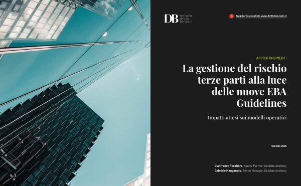 Il contributo analizza le novità e gli impatti attesi sui modelli operativi, fornendo riflessioni sull’esperienza applicativa e l’approccio che il mercato sta adottando in preparazione alle nuove Linee guida EBA per la gestione del rischio terze parti, la cui fase di consultazione si è conclusa lo scorso 8 ottobre 2025 e si attende la versione definitiva entro aprile 2026.