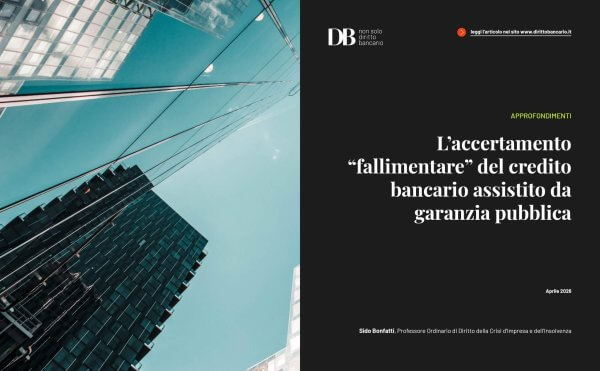 [14] In argomento v. L. Panzani, I privilegi dei crediti finanziari, in Fallimento, 2021, p. 1256; L. D’Orazio, Crediti privilegiati con garanzia SACE, ivi, 2022, p. 125.