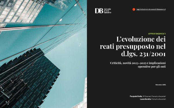 Il triennio 2023–2025 ha visto un’ulteriore espansione del catalogo, con l’introduzione di nuove aree di rischio (ambientale, fiscale, informatica), alcune delle quali ancora in fase di recepimento o attuazione. Parallelamente, cresce la difficoltà per gli enti — in particolare per i gruppi societari complessi e gli operatori del settore bancario e finanziario — di garantire una mappatura del rischio aggiornata, coerente e funzionale a modelli ex D.Lgs. n. 231/2001 (di seguito, “Modello 231”).