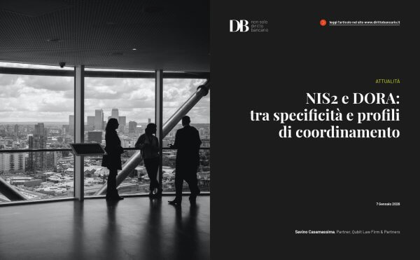 Il presente contributo analizza il quadro normativo europeo di riferimento in materia di sicurezza informatica e resilienza digitale (NIS2 e DORA) soffermandosi sui profili di coordinamento normativo per le banche anche rispetto alle altre normative interconnessi ed alle prossime evoluzioni normative.