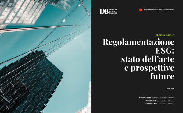 Da molti anni al centro del dibattito internazionale si è posta la necessità di favorire lo sviluppo di un modello di sviluppo economico che consideri e includa i fattori di carattere ambientale, sociale e le buone prassi di governo aziendale (c.d. fattori ESG – Environmental, Social and Governance). Al fine di rafforzare questa inclusione e fornire incentivi a tale modello di sviluppo, è stato coinvolto il sistema finanziario quale uno dei veicoli diretti a convogliare gli investimenti verso le menzionata finalità.