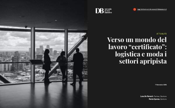 Il presente contributo analizza le novità legate all’istituzione del Cruscotto informativo per la gestione dei contratti di appalto tra privati nel settore della logistica (CIGAL) e alla proposta di introduzione della Certificazione unica di conformità delle filiere della moda.