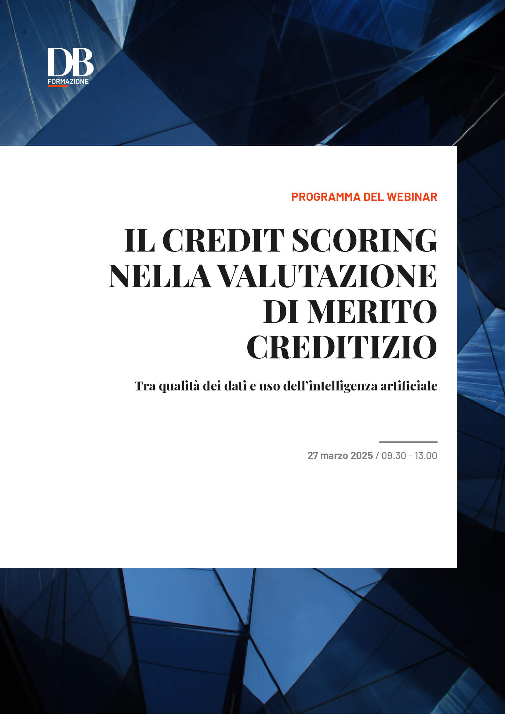 La nostra rivista ha organizzato per il prossimo 27 marzo 2025 un webinar sulla valutazione del merito creditizio dei soggetti finanziati attraverso sistemi di credit scoring, che si sofferma sugli obblighi, misure per il corretto processo e relative problematiche per le banche e gli altri intermediari finanziari.