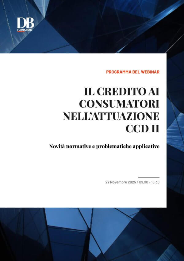 La nostra rivista ha organizzato per il prossimo 27 novembre, in concomitanza con l’emanazione del decreto attuativo della Direttiva 2023/225 (CCD II), un webinar che si soffermerà sulla concreta gestione del rapporto di credito con i consumatori da parte dell’intermediario, e ciò in ogni fase del rapporto contrattuale, dall’offerta di credito, all’eventuale patologia del rapporto, analizzando al contempo le necessarie ed opportune modifiche alle policy interne degli intermediari.